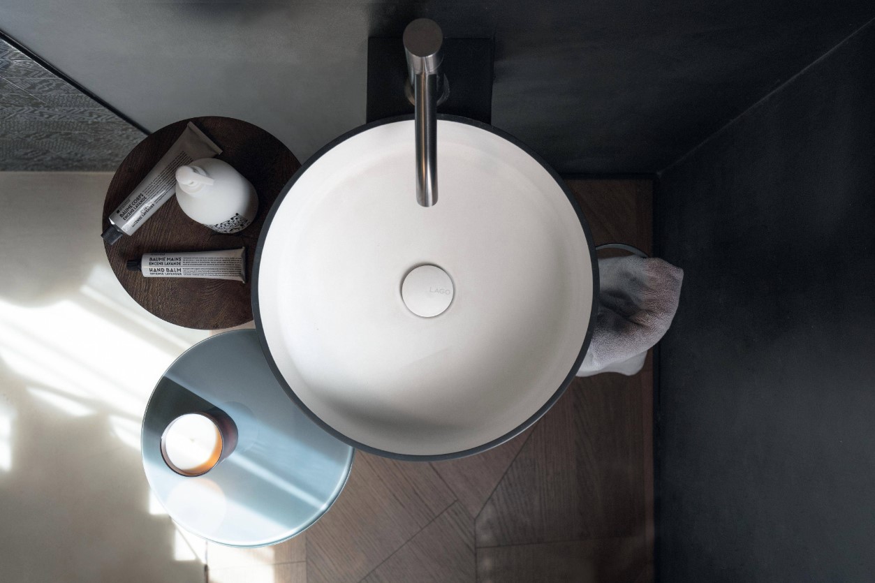 El lavabo Cellule de LAGO es una pieza que parte de la forma más pura: el círculo. Su diseño sencillo y esencial se transforma en una propuesta creativa gracias a la incorporación de elementos complementarios que orbitan a su alrededor, generando una composición dinámica y altamente personalizable.