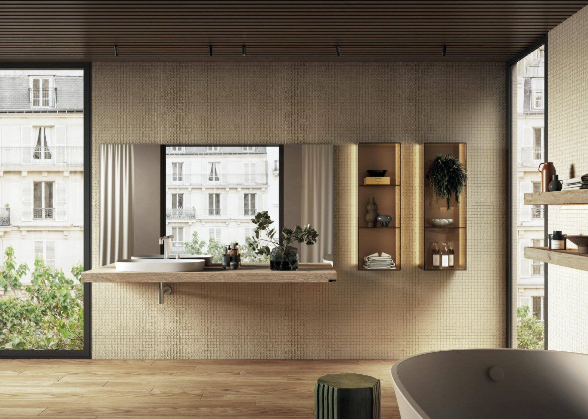 Más allá de su estética, Cellule ofrece una solución práctica y flexible. La posibilidad de integrar superficies de apoyo directamente en el lavabo mejora la funcionalidad del día a día, al tiempo que mantiene una composición ordenada y coherente.